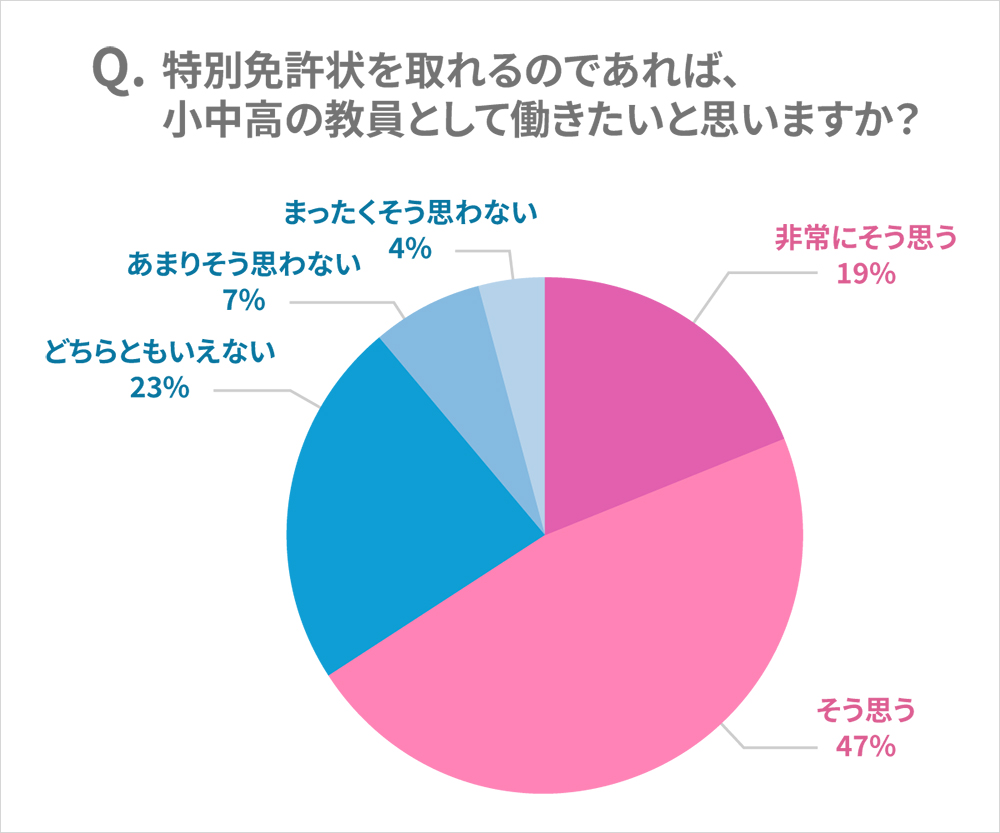 「学校現場」と「社会」、隔絶した存在と思われがちな二者ですが、実は社会には我々が想像するより多く、なんと63%もの方が先生になることに興味があることがわかったのです。(当社調べ*1)